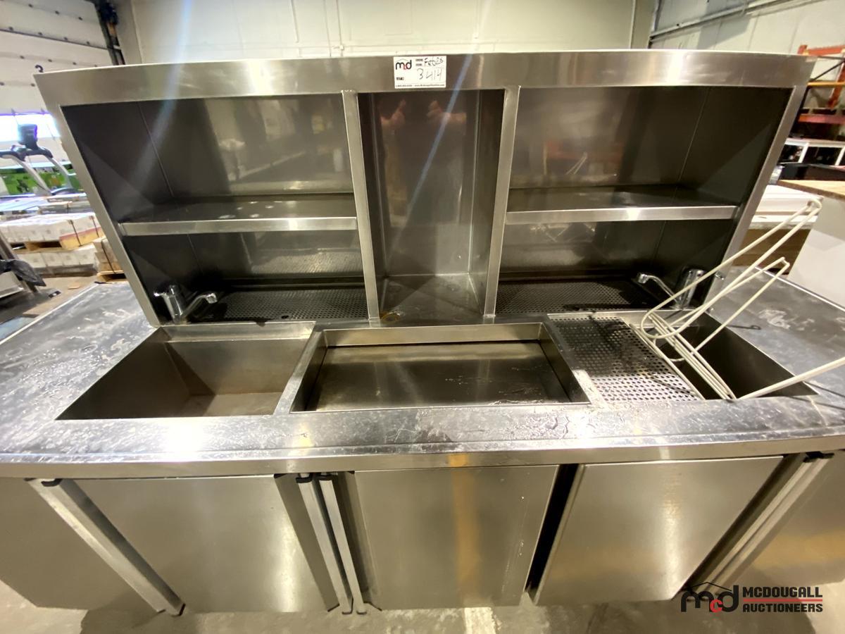 2-Compartment Stainless Steel Sink w/ Shelving & Cabinet Storage